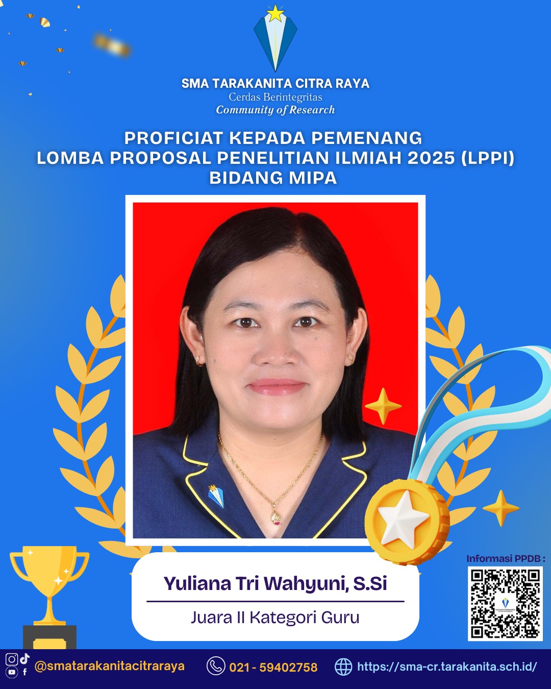 Proficiat untuk Ibu Yuliana Triwahyuni, S.Si Juara II Kategori Guru dalam LPPI 2025.