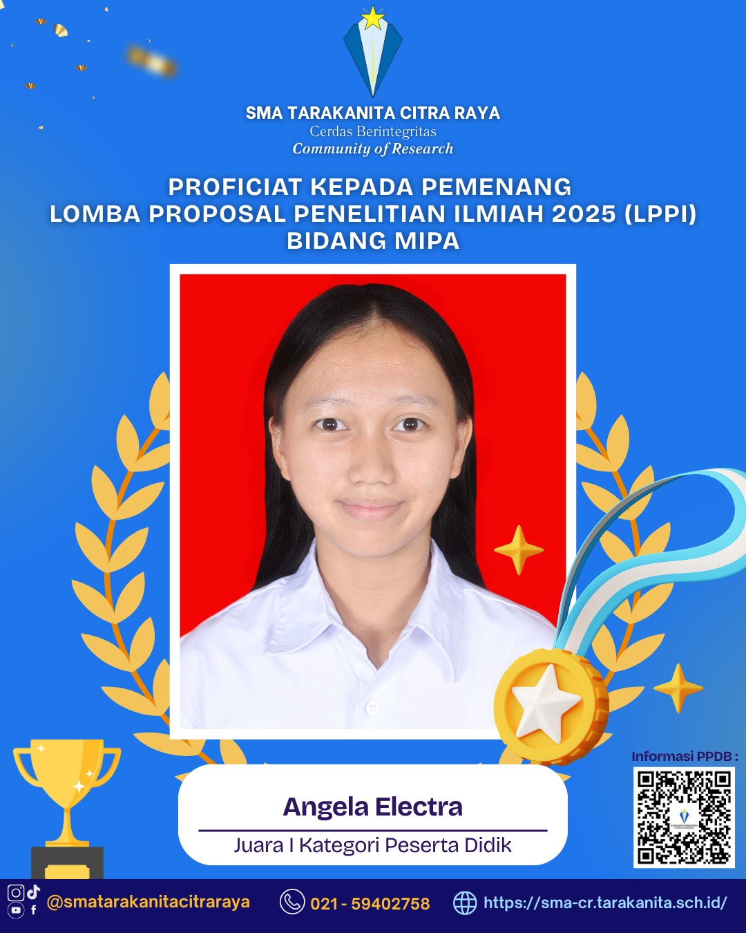 Proficiat ANGELA ELECTRAÂ Juara 1 Kategori Peserta Didik dalam LPPI 2025 Budang MIPA