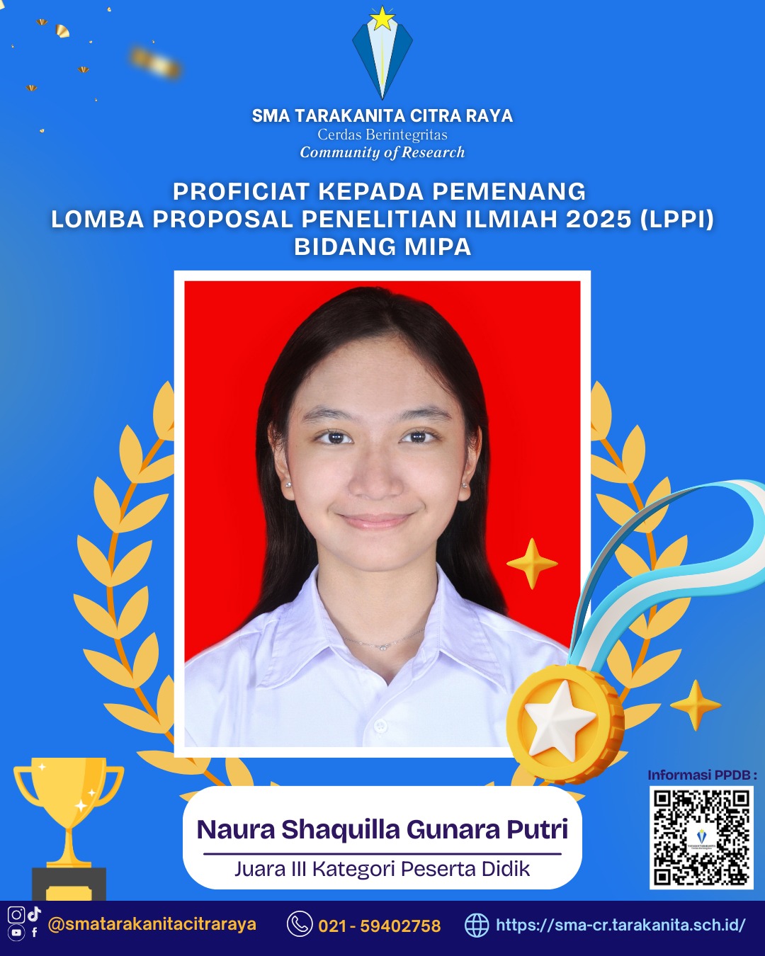 Proficiat untuk Naura Shaquilla Gunara Putri Juara III Kategri peserta didik dalam LPPI 2025.