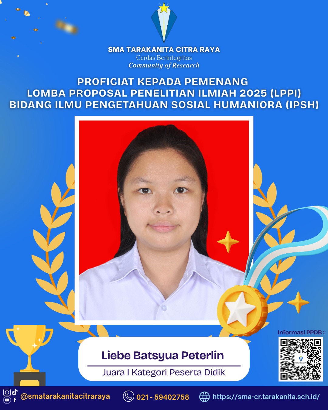 Proficiat untuk LIEBE BATSYA PETERLIN Juara 1 dalam LPPI 2025